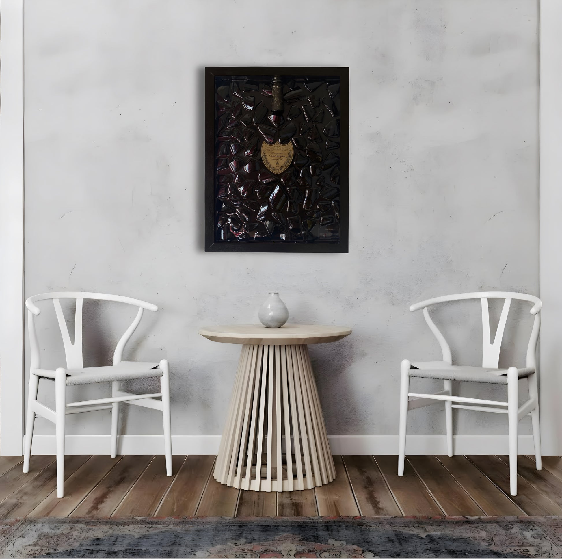 A bottle of Vintage Dom Pèrignon transformed into a work of art.