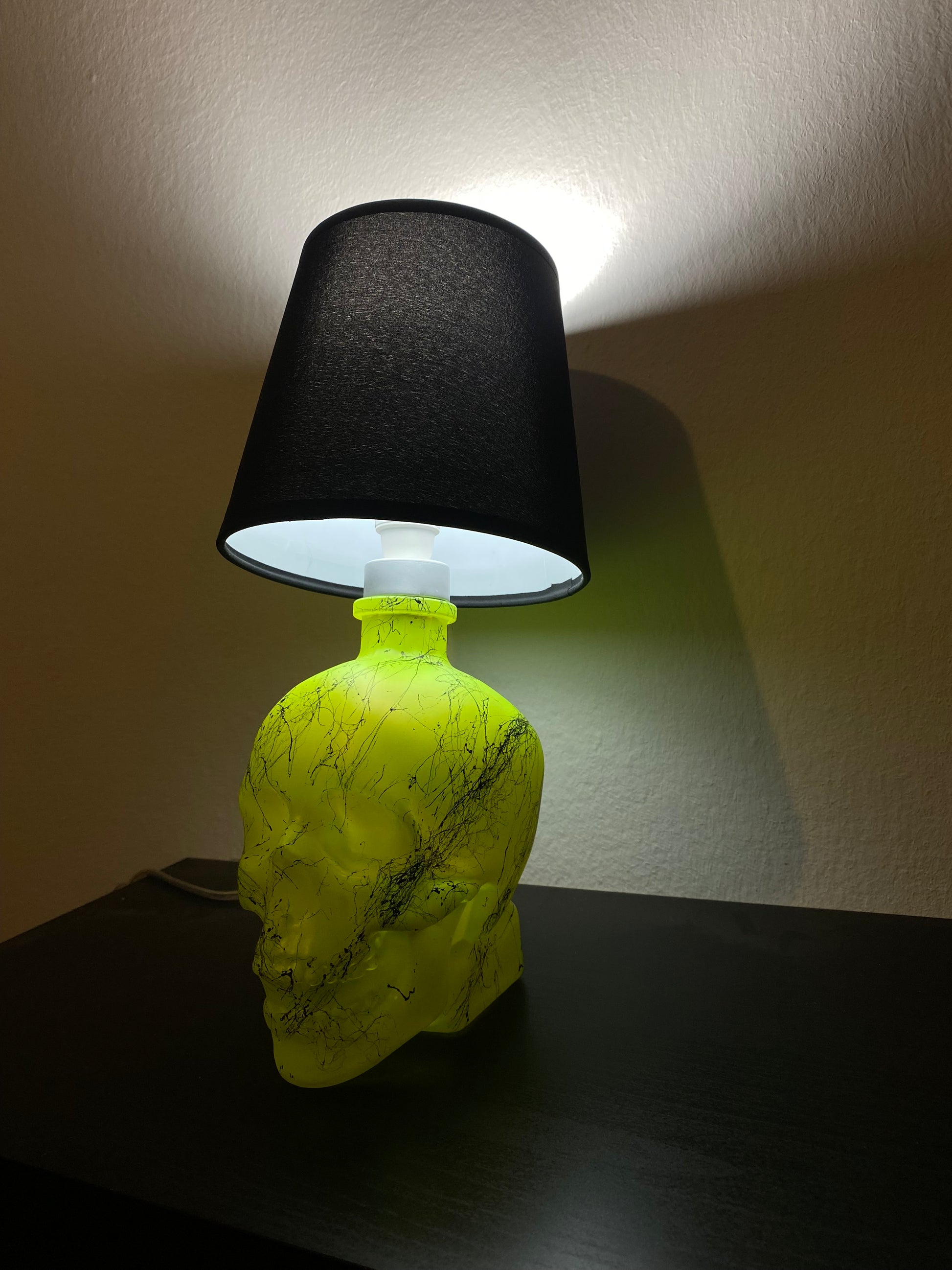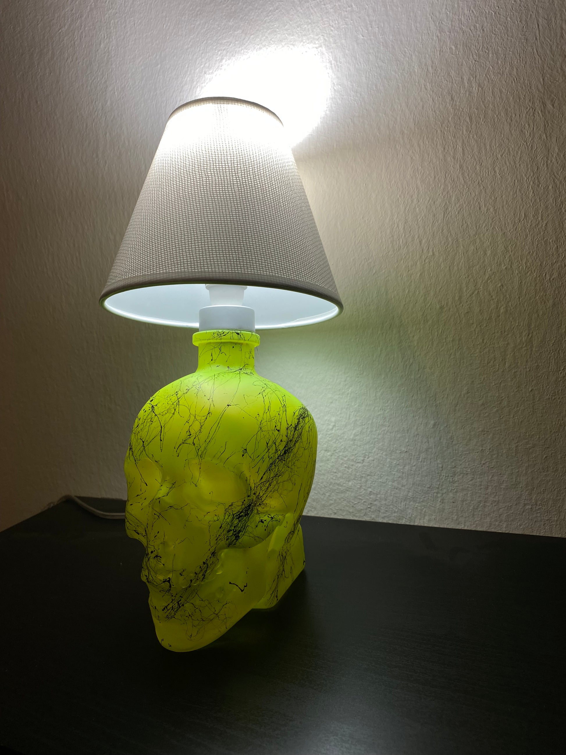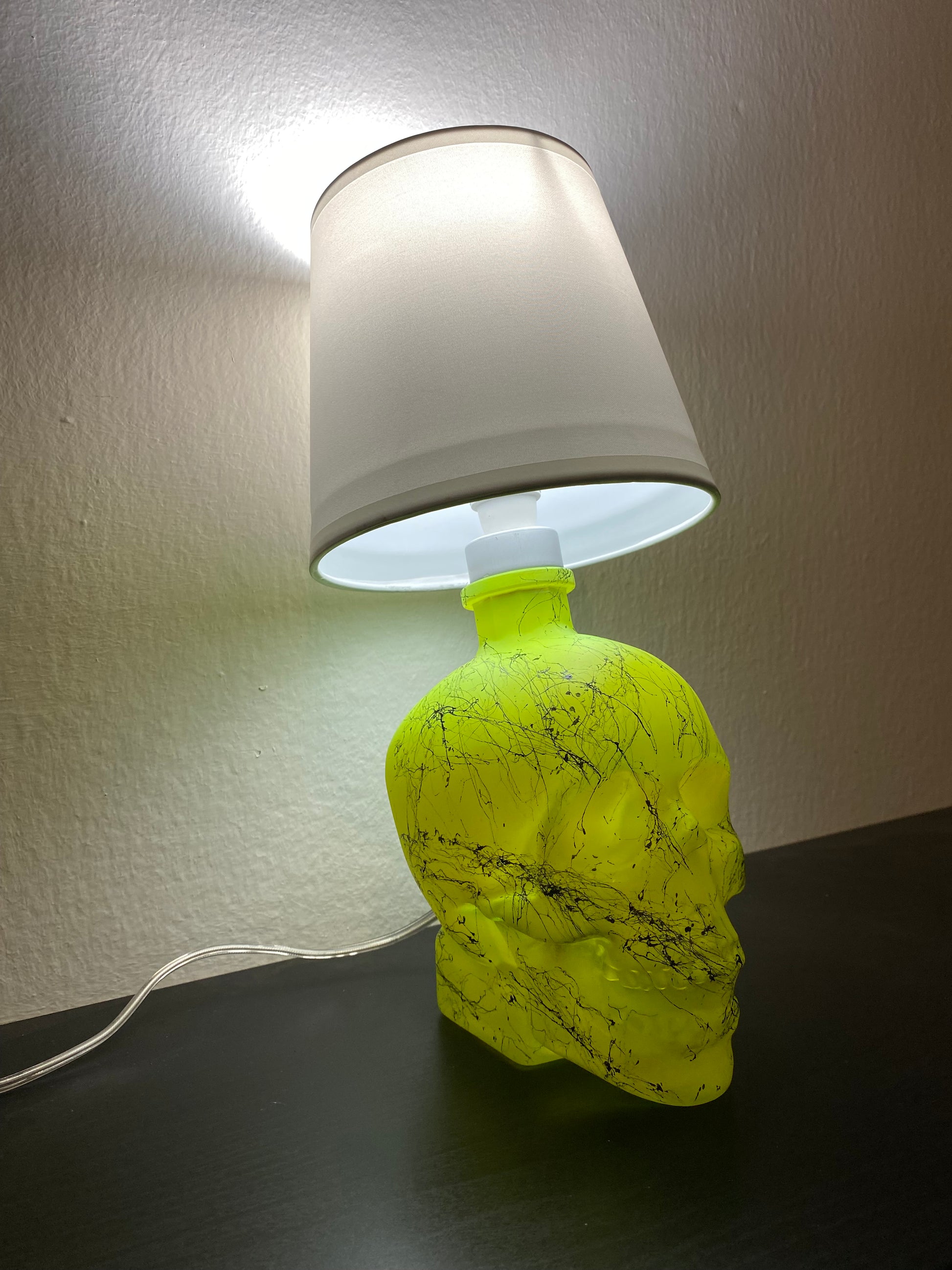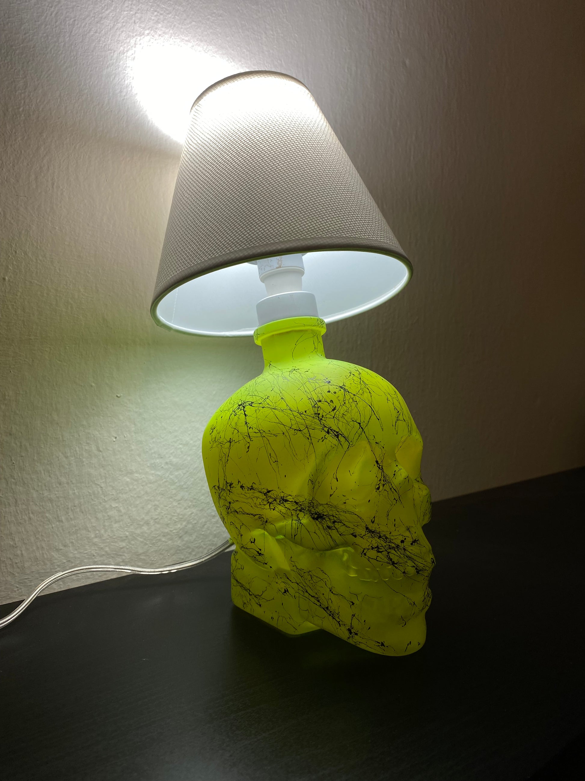 Illuminez votre maison avec l'effet marbre jaune fluorescent vibrant de la lampe tête de mort en cristal.
