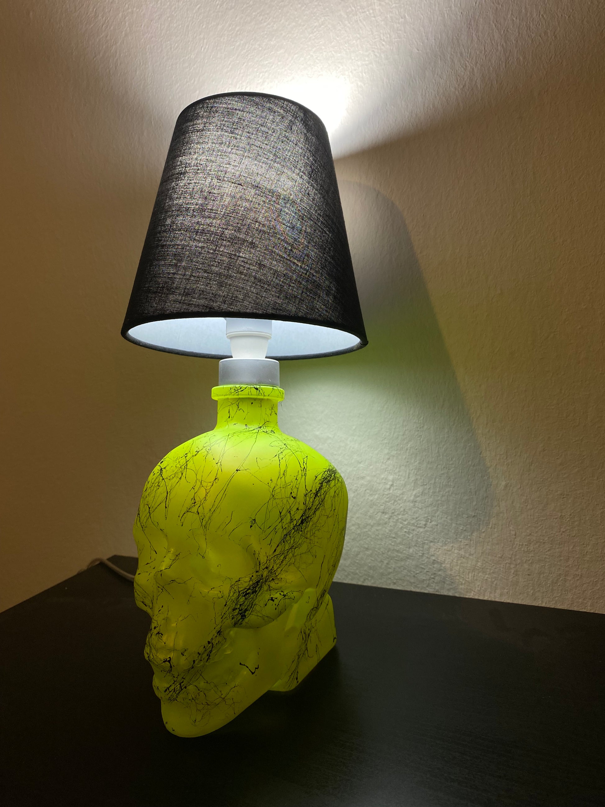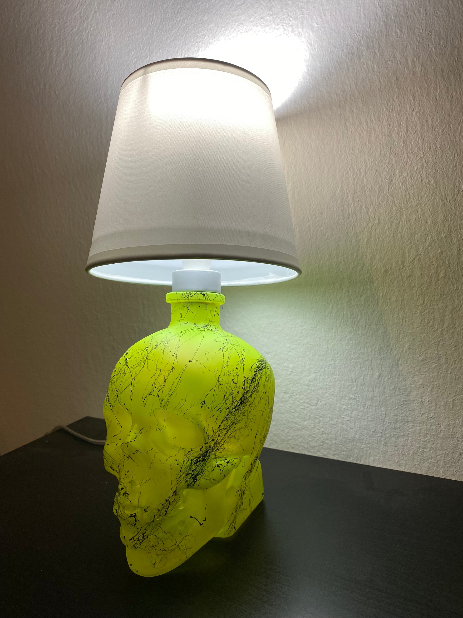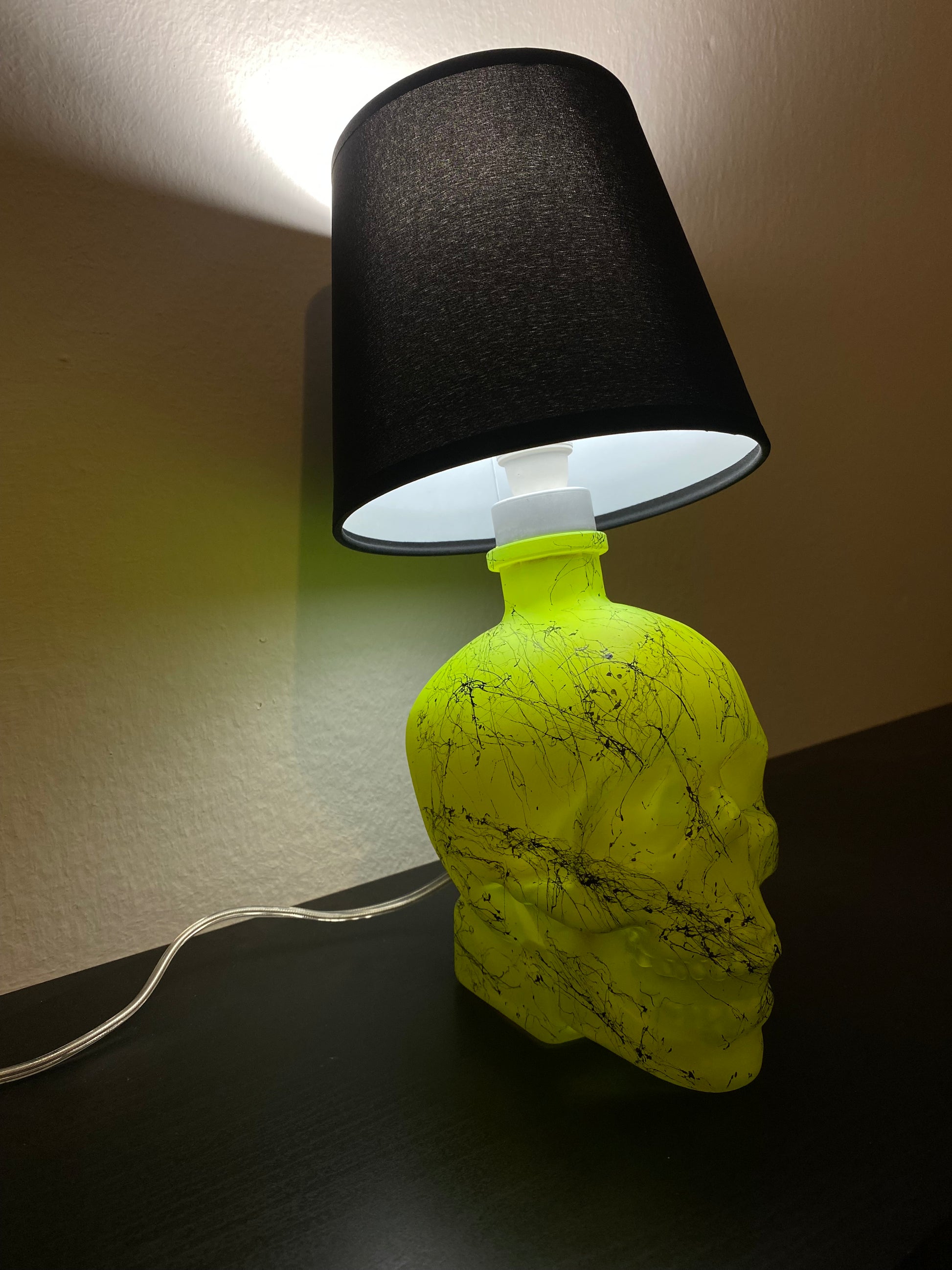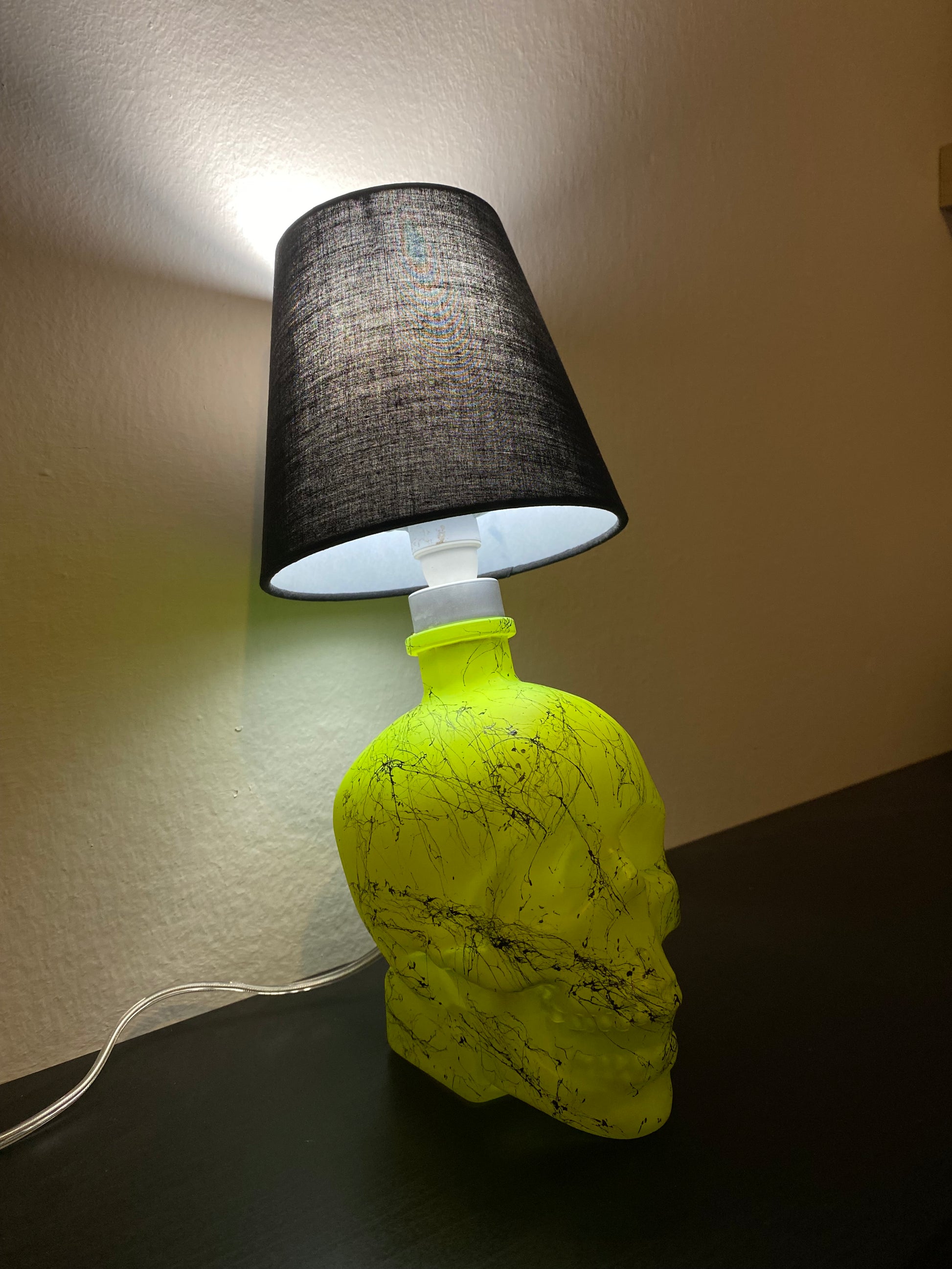Illuminez votre maison avec l'effet marbre jaune fluorescent vibrant de la lampe tête de mort en cristal.