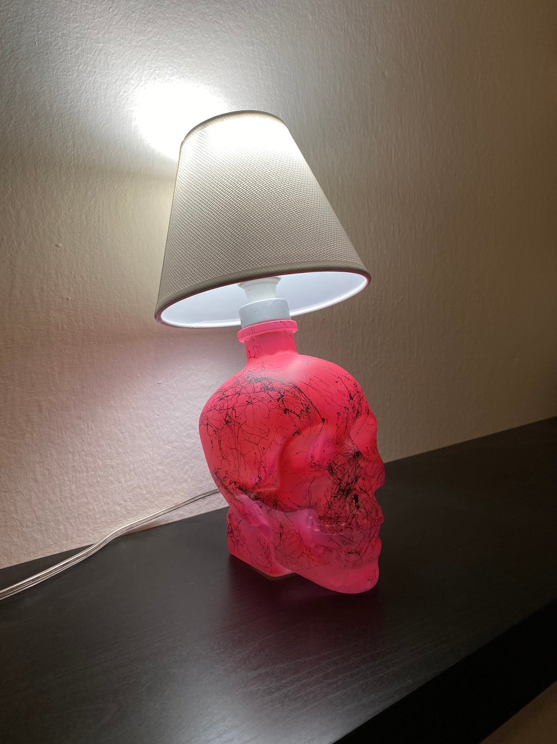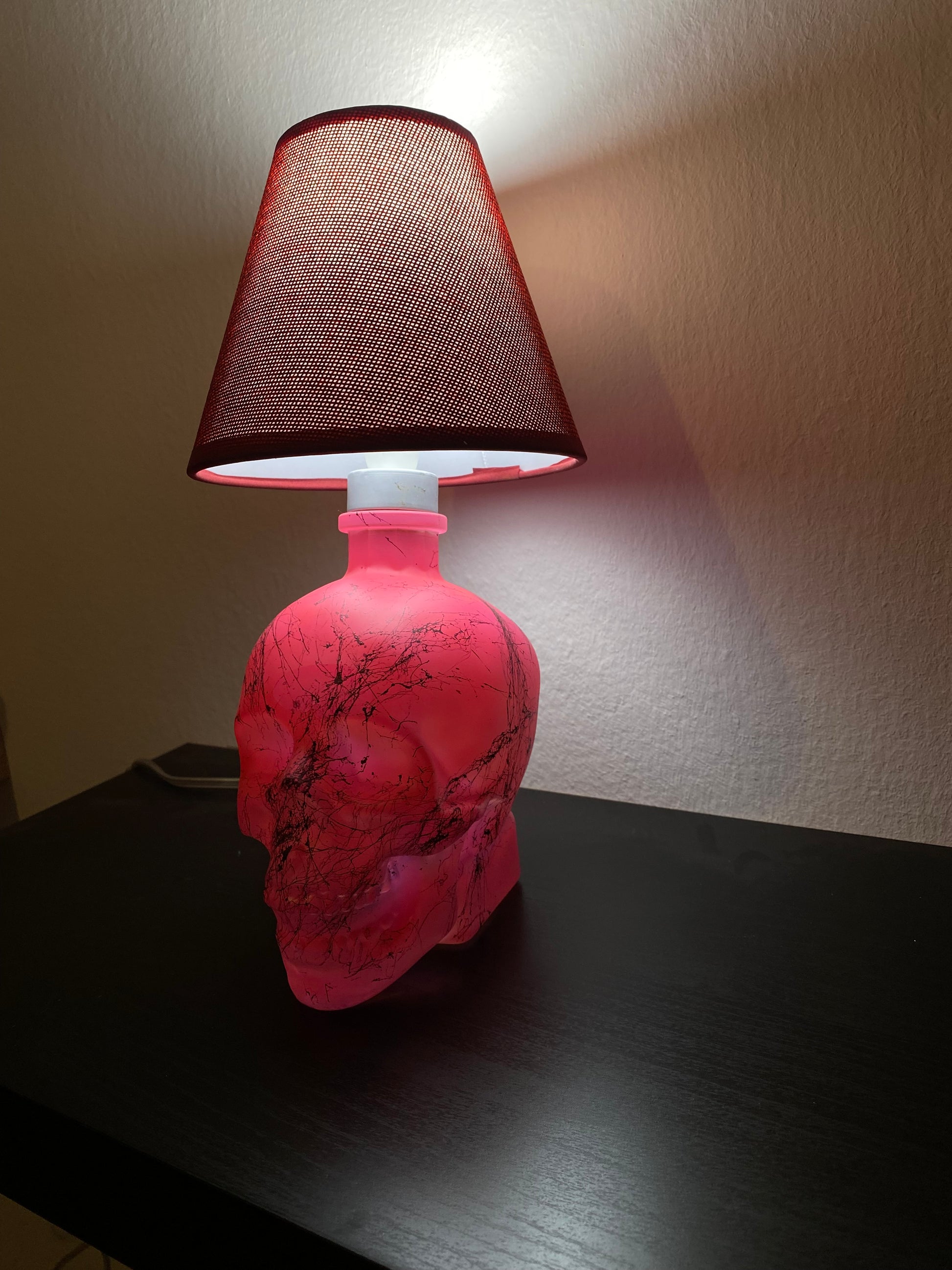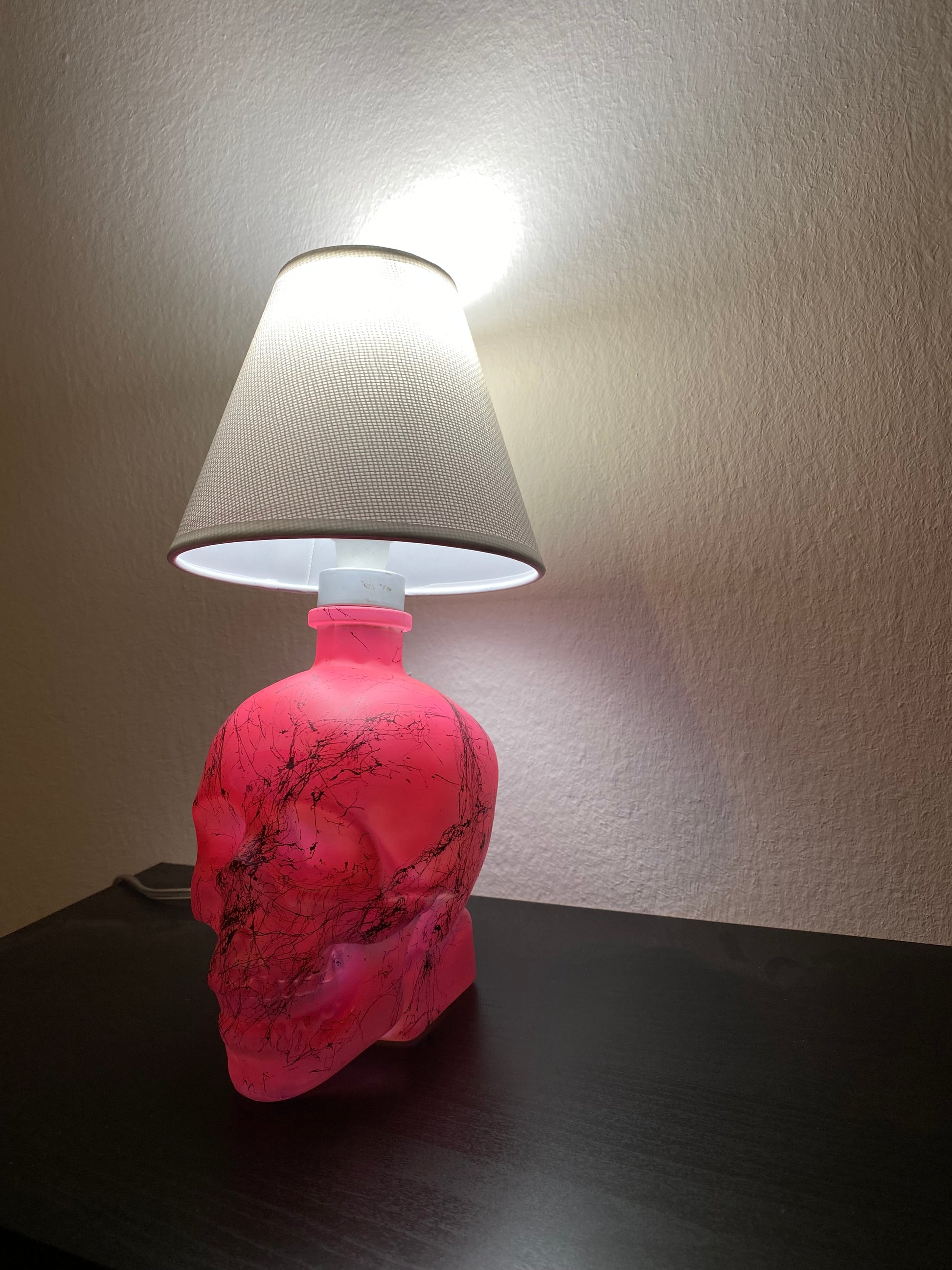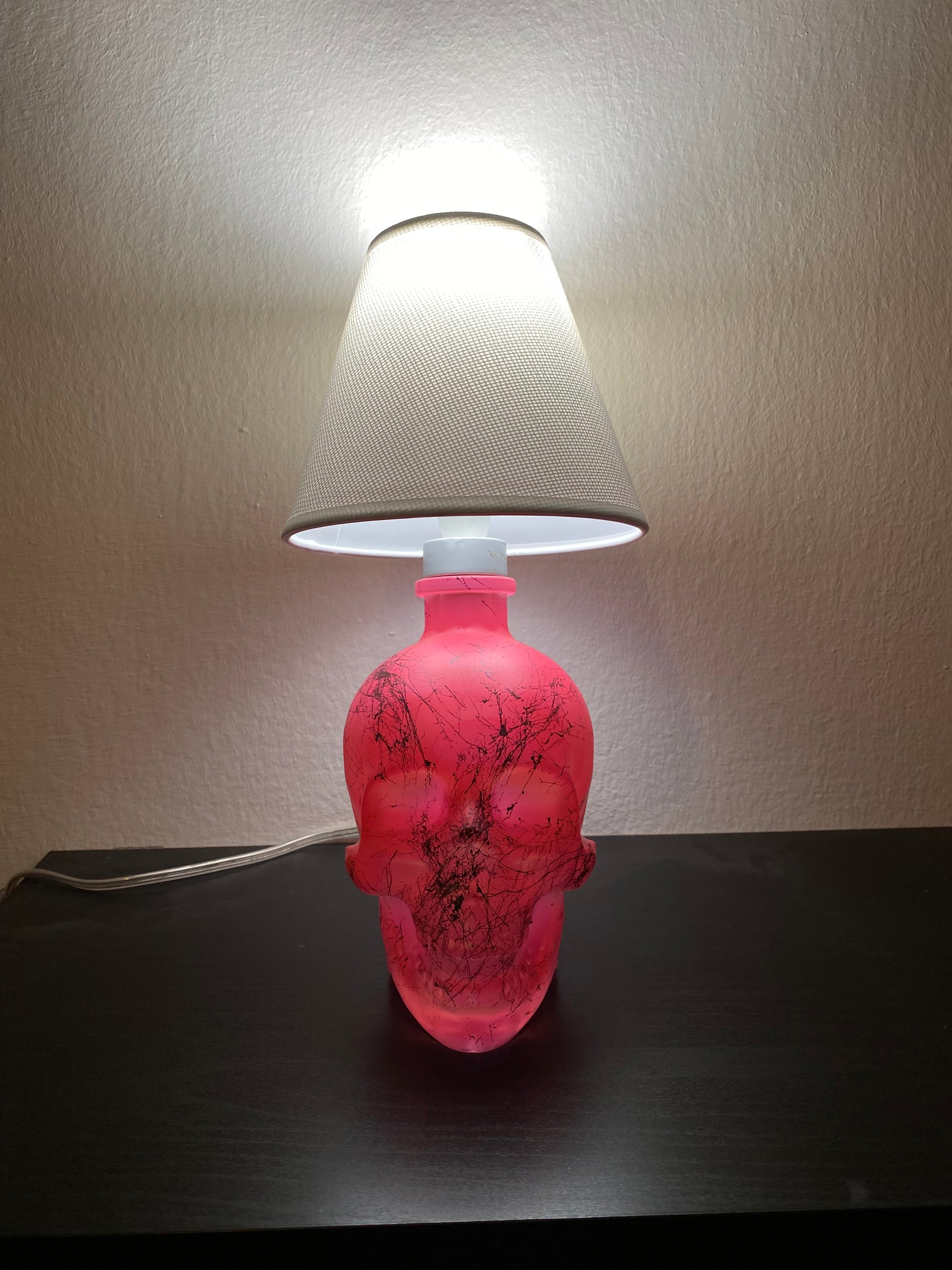 Lampe Tête de Mort en Cristal Rose Fluo Effet Marbre