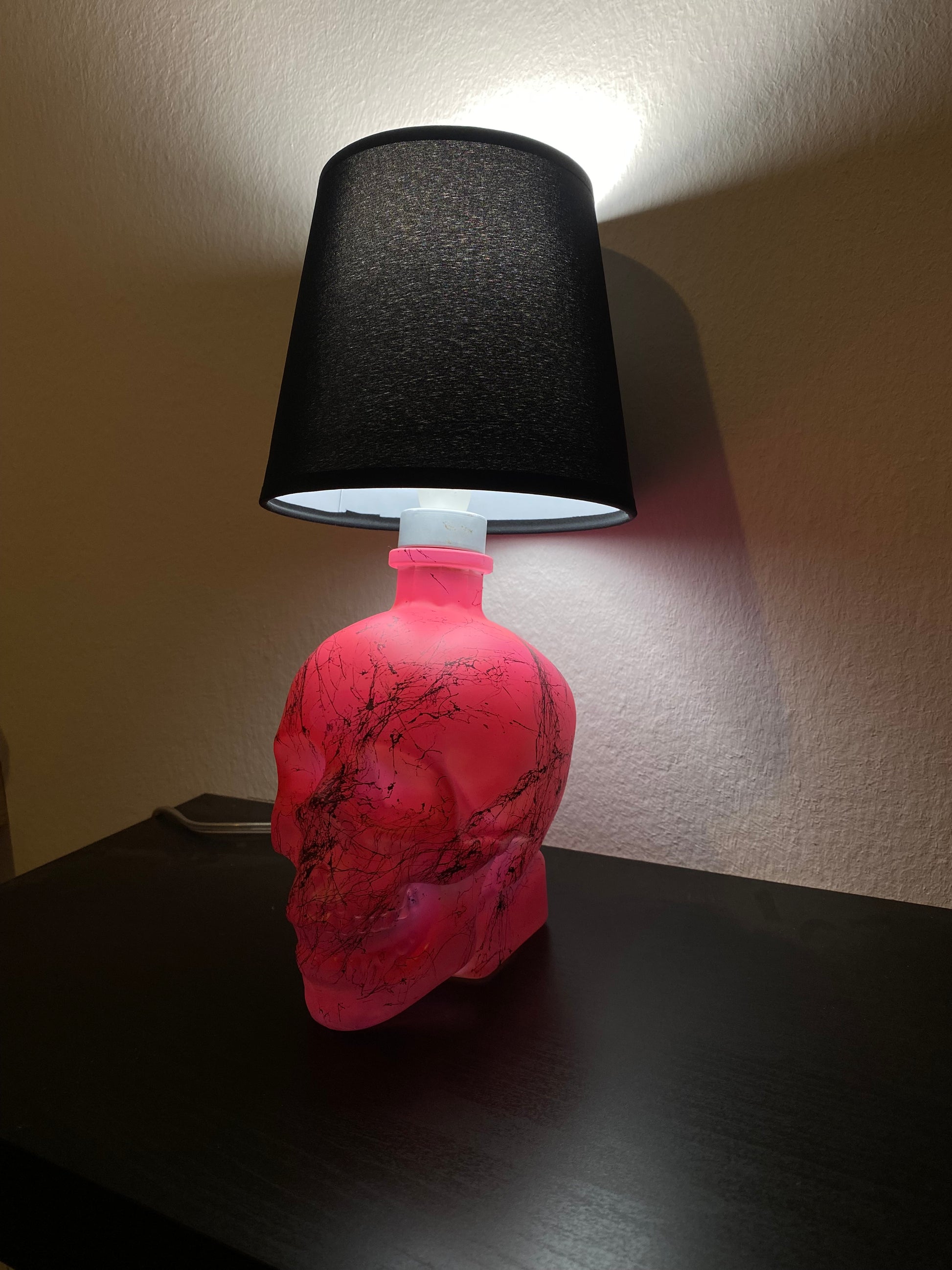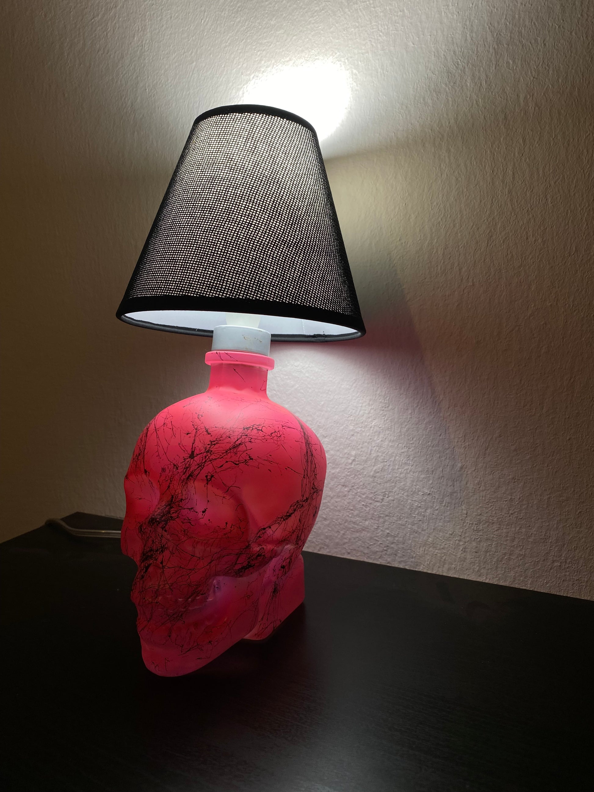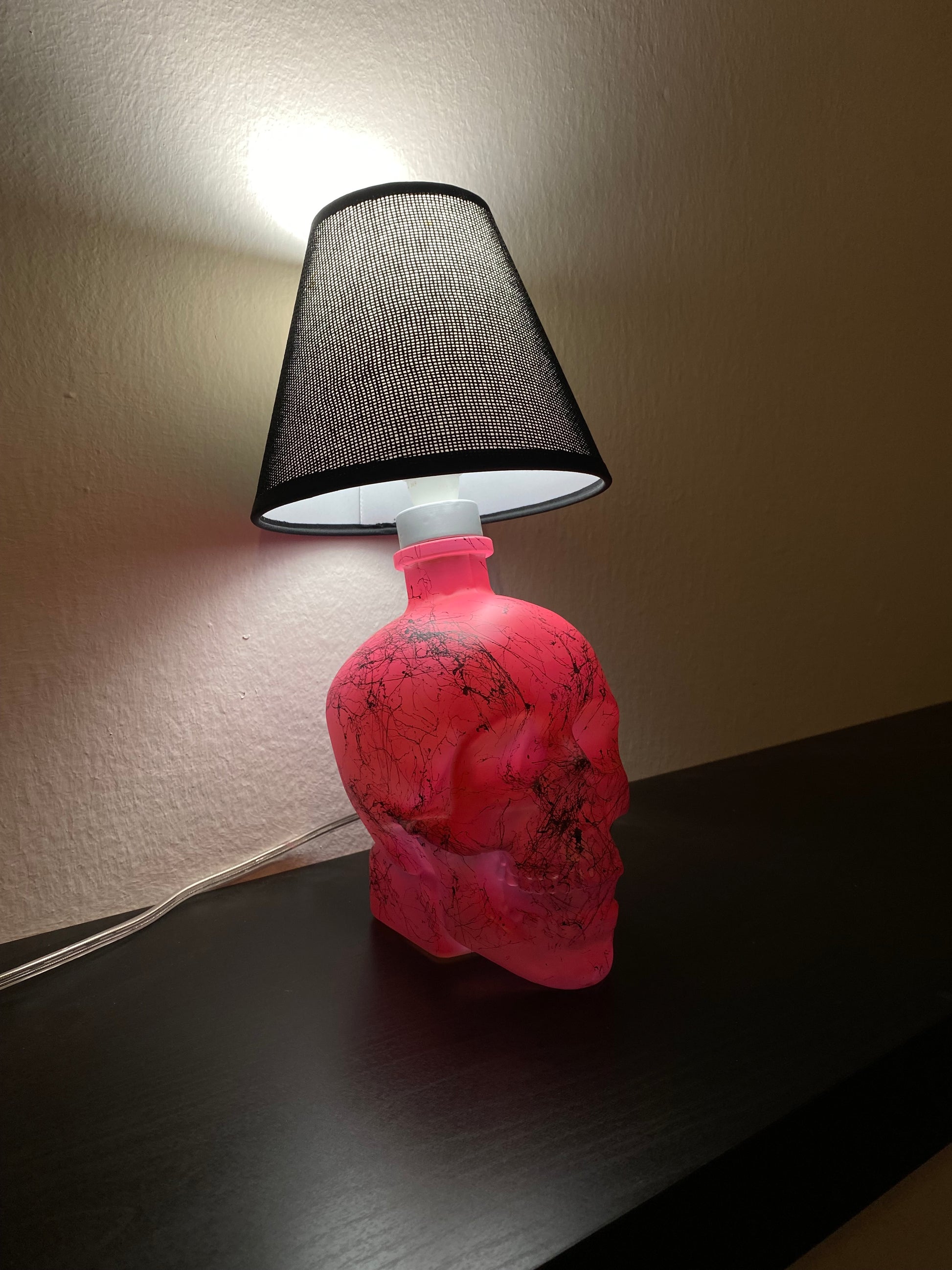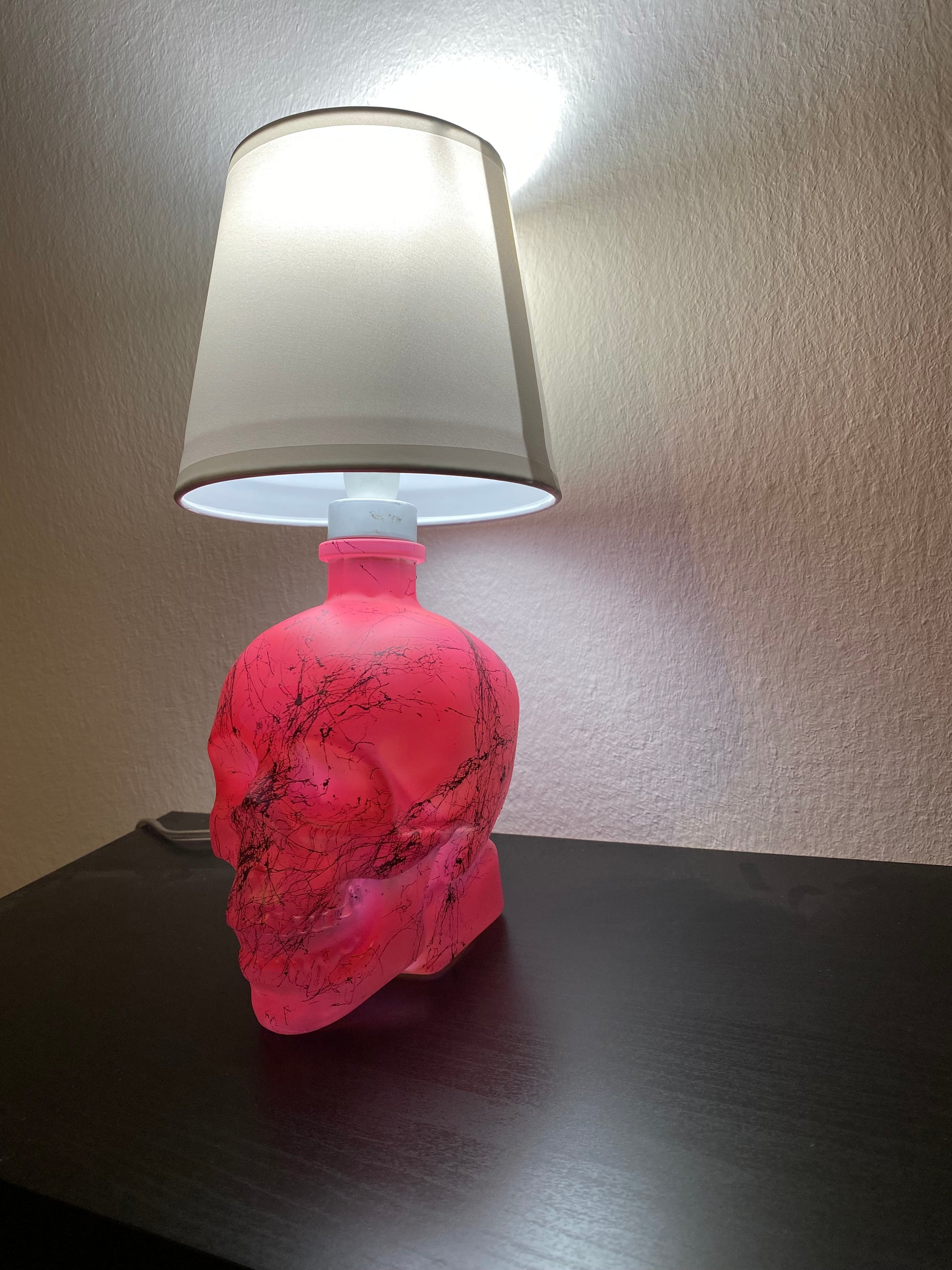 Lampe Tête de Mort en Cristal Rose Fluo Effet Marbre