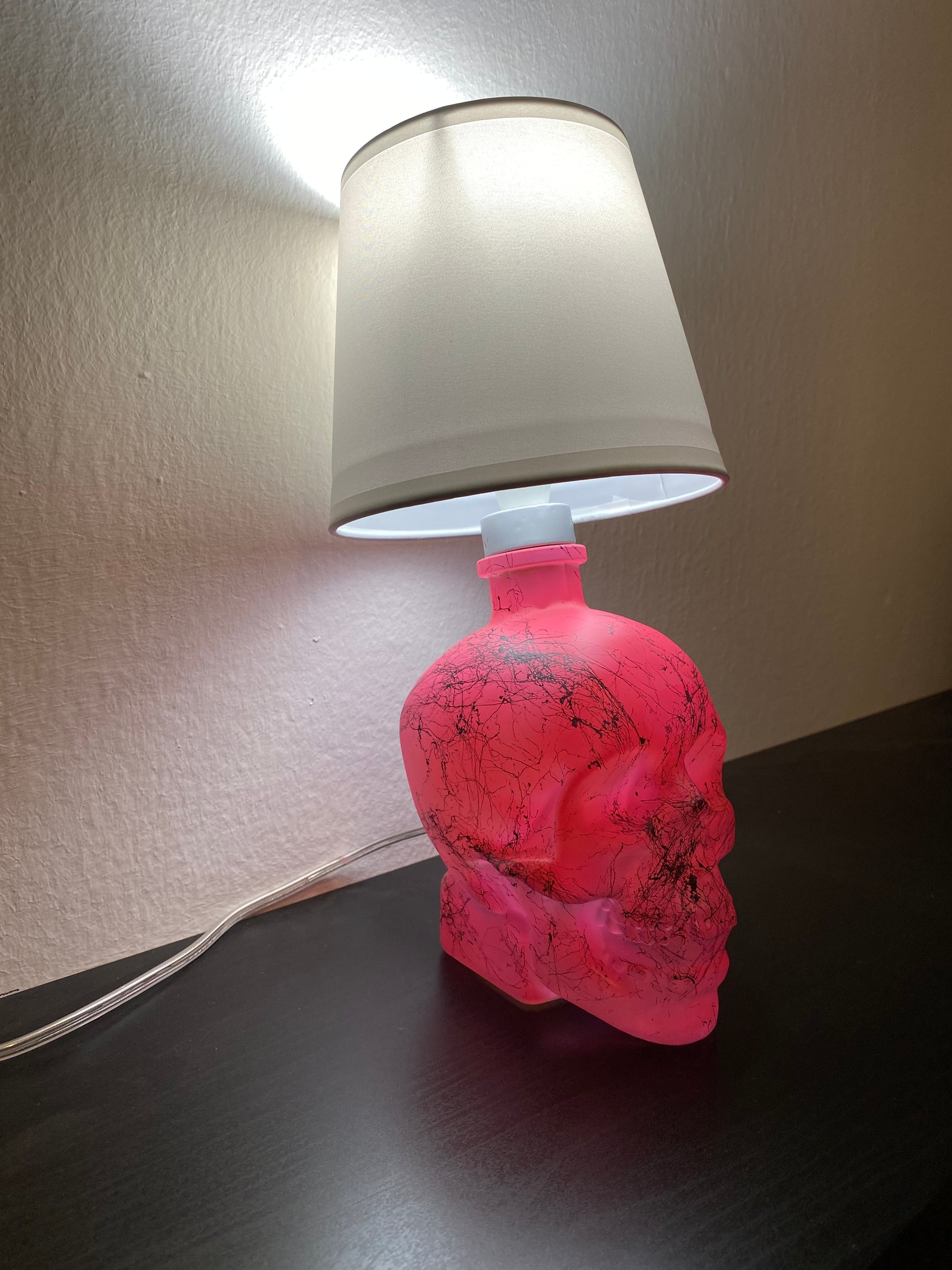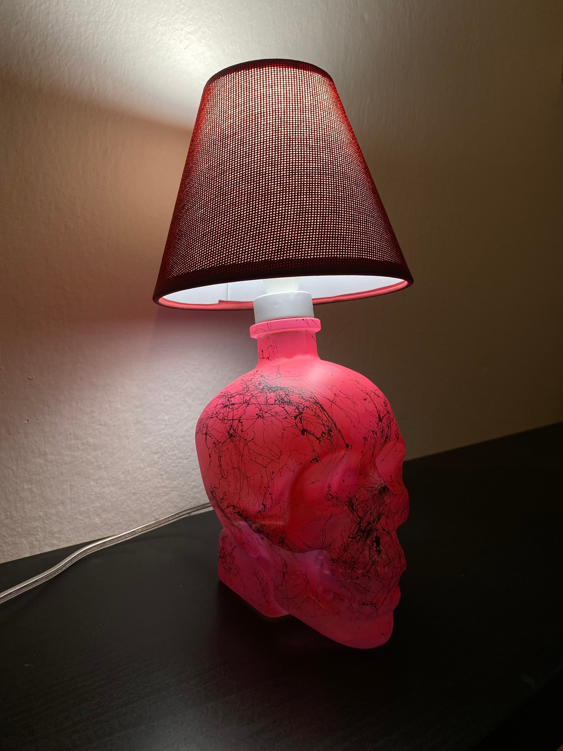 Illuminez votre maison avec l'effet marbre rose fluorescent vibrant de la lampe tête de mort en cristal.