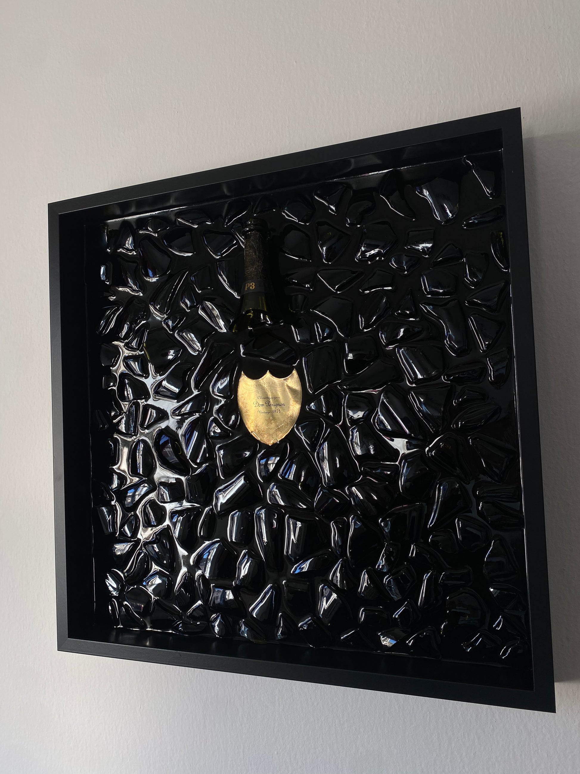 Una bottiglia di Dom Pèrignon Vintage P3 1971 trasformata in un'opera d'arte.