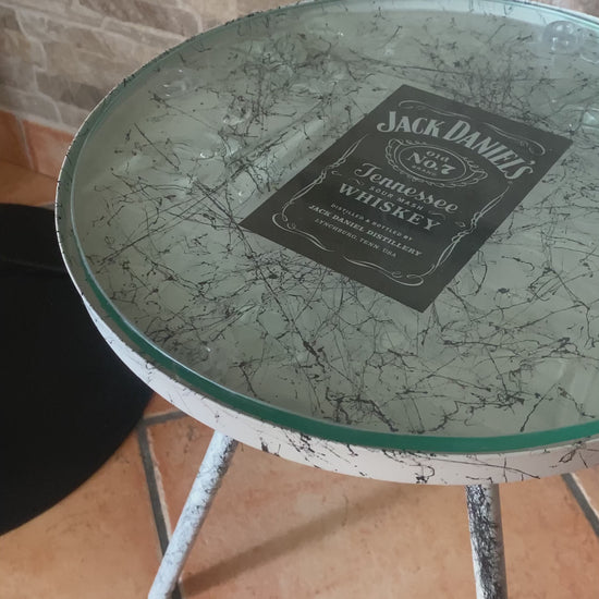 Tavolo artigianale di ottima qualità, realizzato con una bottiglia di Jack Daniel’S e Resina